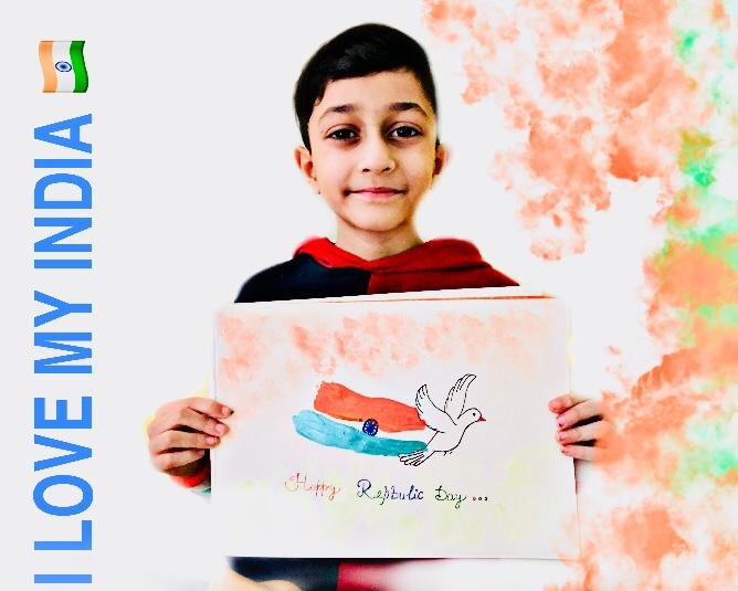 Glimpses of online Republic Day celebrations at Emerald International School 2020-21 Each year, 26th January is a day on which every Indian heart fills up with patriotic fervour and immense love for motherland. The 72nd Republic Day was celebrated in all its solemnity and grandeur at Emerald International School. The students of Sparsh, Jigyasa and Manthan wing took pride in glorifying and celebrating the spirit of unity and brotherhood through various online activities like kite making and slogan writing .The students pledged themselves to uphold the honour and integrity, diversity and uniqueness of our Indian culture.